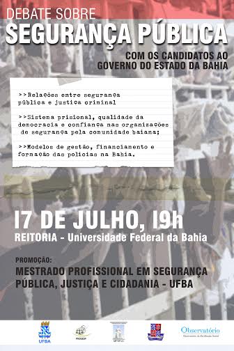 | Título | CANDIDATOS AO GOVERNO DA BAHIA DEBATEM SEGURANÇA PÚBLICA NA UFBA |